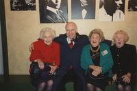 Brian Lamb poses with Mem Constidine, Eileen O'Gara, and Bobbsie Ross. This photograph was taken as part of filming C-SPAN's Lincoln-Douglas Debates series in Galesburg, Illinois.