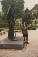 A person looks up at a statue of Robert Pershing Wadlow. This photograph was taken as part of filming C-SPAN's Lincoln-Douglas Debates series in Alton, Illinois.